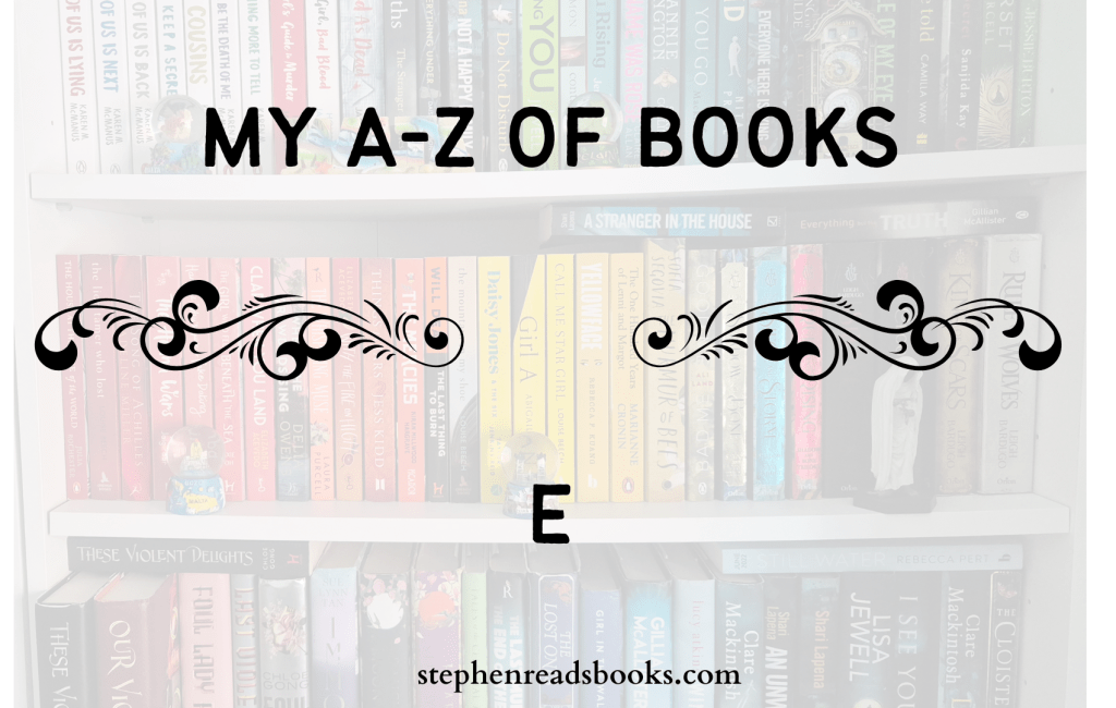 Time for my latest A-Z post, featuring all the significant things about the books I read between the start of 2018 and the end of 2022. This one is all about the letter ‘E’, which is a particularly popular one for character names.